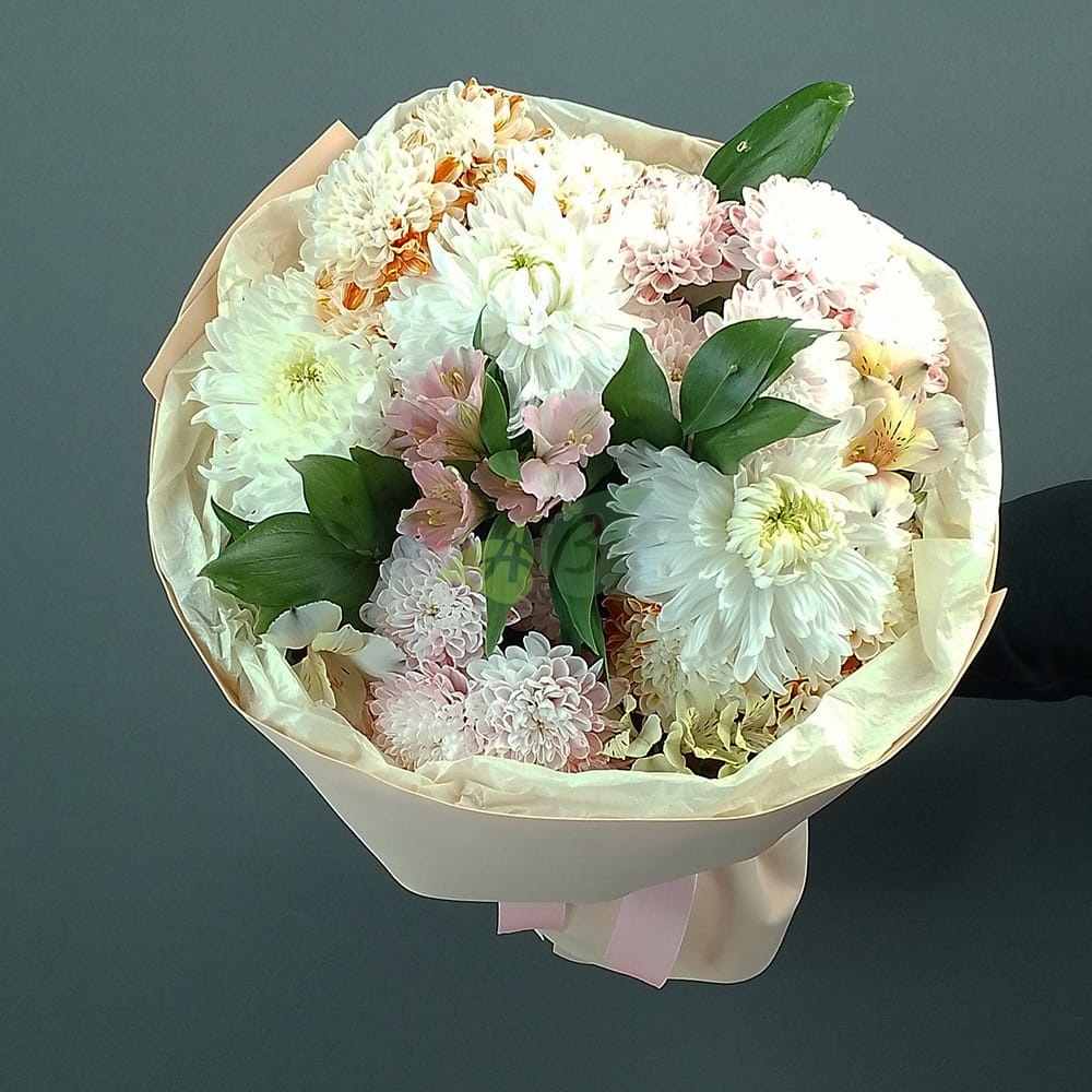 “Фламенко” – это букет из хризантем и альстромерии, который можно купить в нашем интернет-магазине.